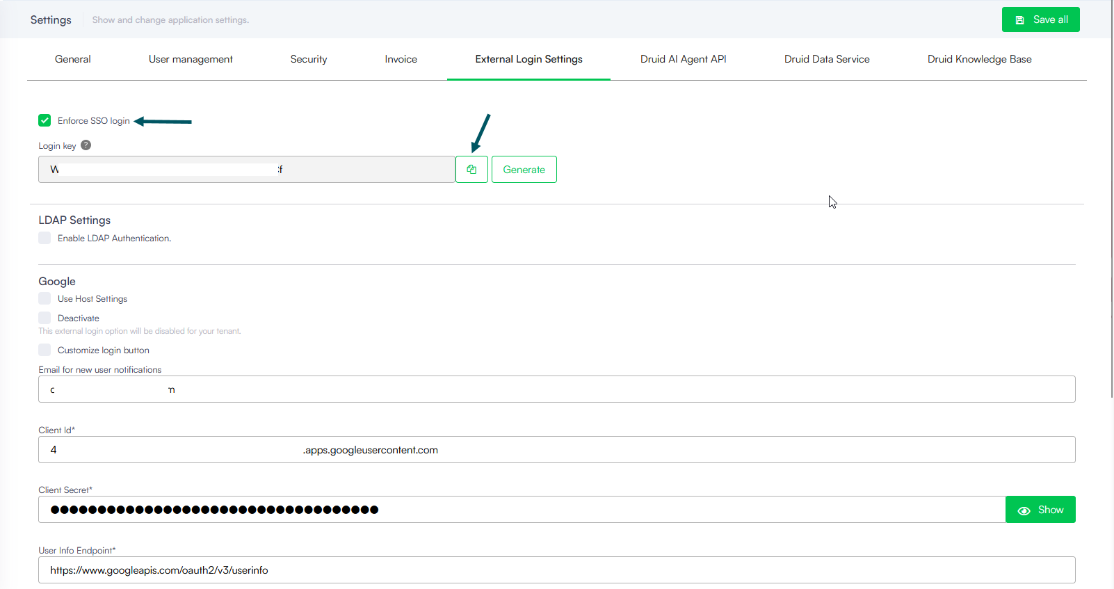• Enforce SSO Login for All Portal Users. Administrators can now enforce Single Sign-On (SSO) login for all Druid Portal users, ensuring that every user authenticates through the organization’s external identity provider.
