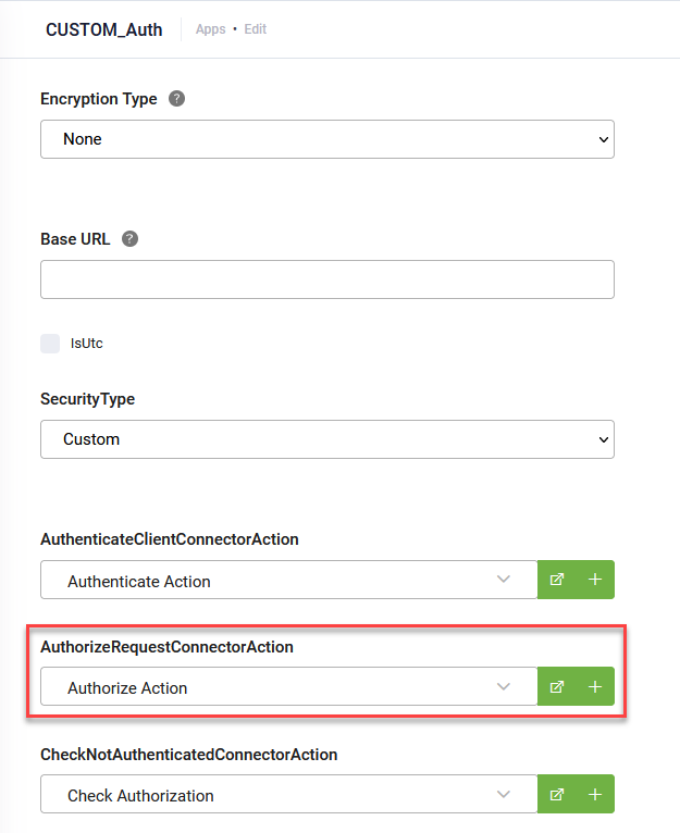 Go to Apps and click on the REST connector you want to configure. From the AuthorizeRequestConnectorAction drop-down, select the security template.