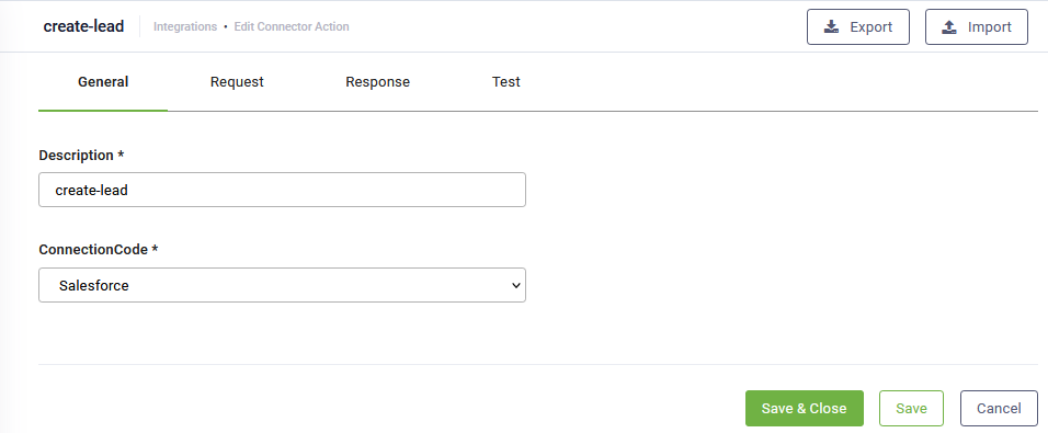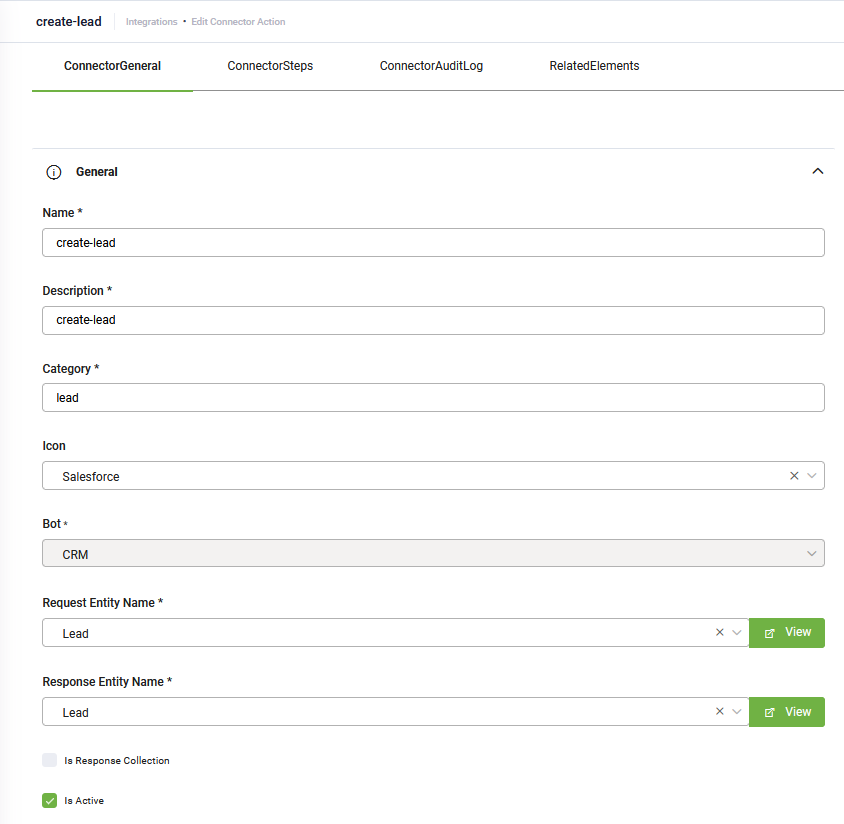 In the General tab, you see that integration tasks is using the Salesforce app presented in a previous section.