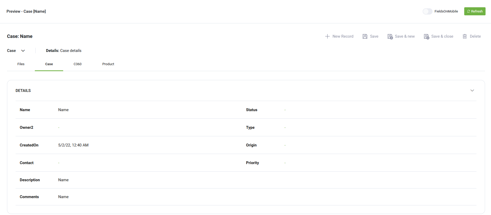 Authors can define simple forms that only show specific entity record data, and complex forms that enable business users to manipulate the data (add new record details, attach files, etc.).
