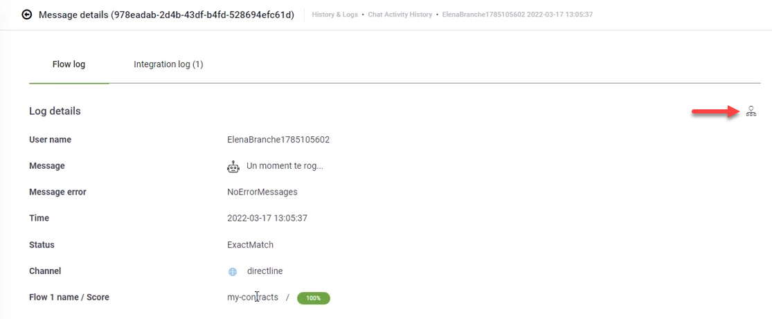 You can see details of a specific message and the integration log directly in the Flow diagram, by clicking the View message details icon (