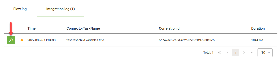 You can further investigate the integration logs by clicking the View details icon in front of the desired record.