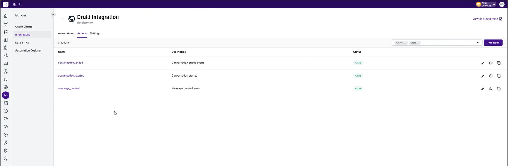 This section provides instructions for integrating Druid bots with Talkdesk.