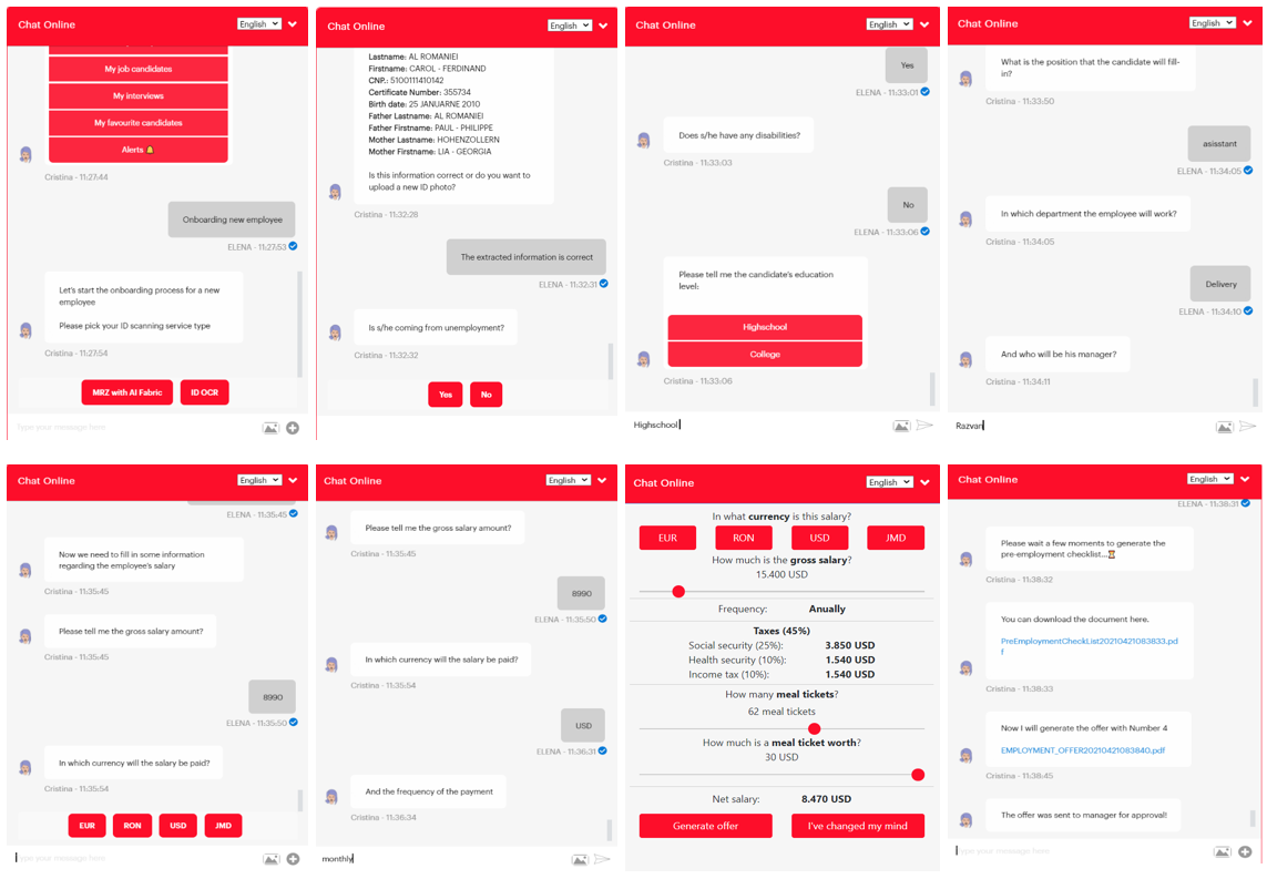 As an HR Admin you are going to have access to the onboarding new employee workflow including pre-screening questions, offer generator and digital contract signature, creating new employee account automatically in the HR system or using the OCR of the identity card and childbirth certificate to validate the identity of the employee and save the documents on each employee digital file.