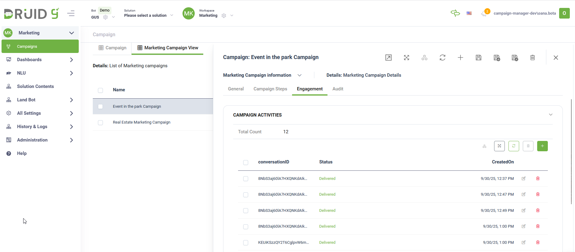 For each Campaign you can check the total number of messages that were delivered in chat conversations in the Engagement tab.