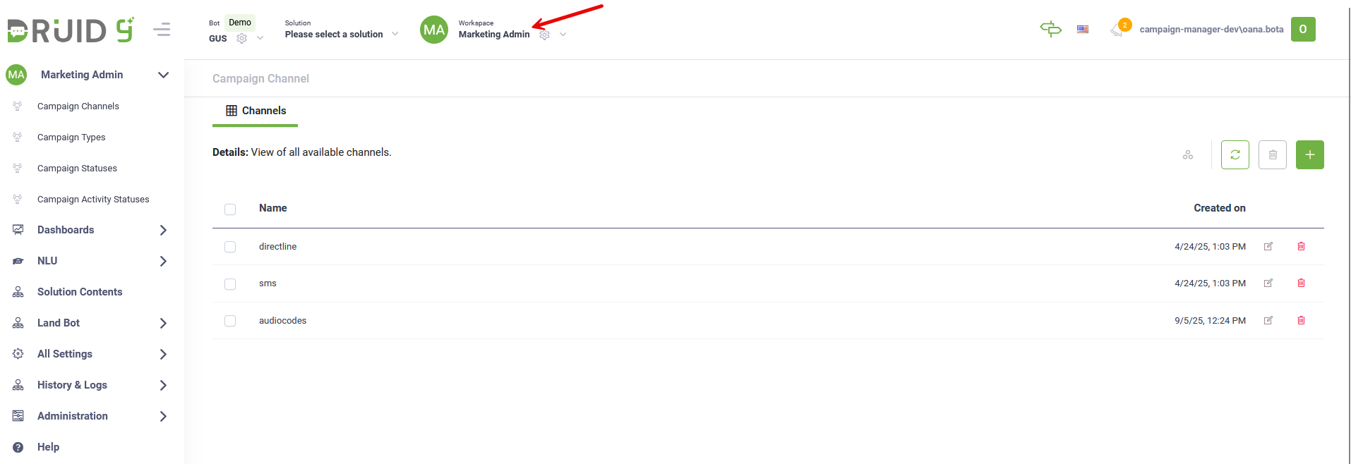 - You should have a Druid bot. For information on how to create a bot, see Creating Druid Bots.